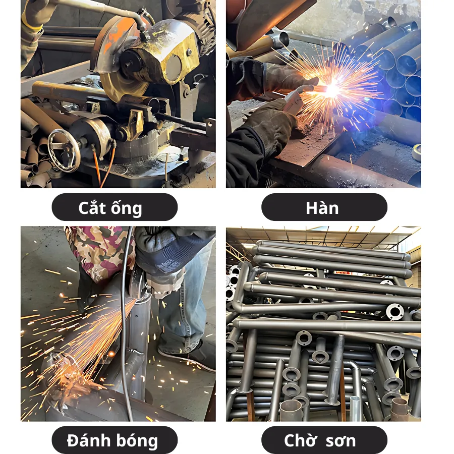 - Cột trụ: Thép ống đen